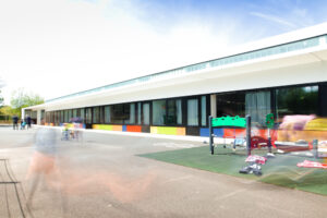 L’école Albert Jacquard est une construction récente, organisée sur deux niveaux : un niveau pour l’école maternelle et un niveau pour l’école élémentaire. Chaque école a sa propre cour.