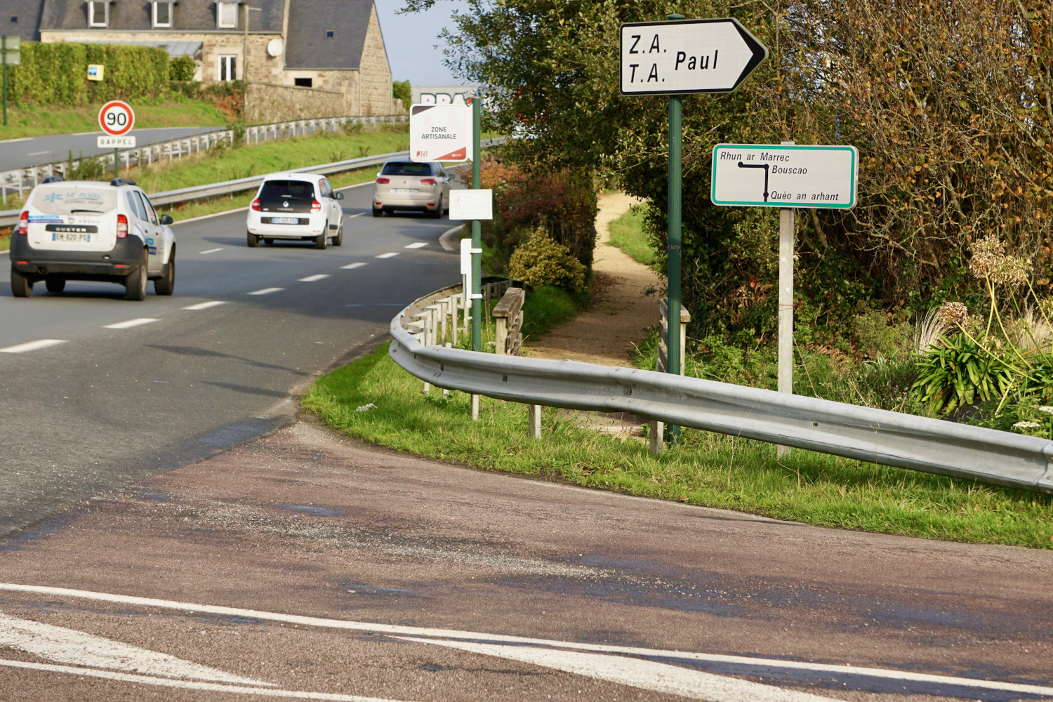 Ce projet se décline en un itinéraire aller à l’est de la RD, et un itinéraire retour à l’ouest, sur des voies ou parcelles qui sont communales : voir la carte de ces deux itinéraires sur Géoportail (nouvelle fenêtre). Ces itinéraires étant sur des voies non départementales, ils sont réalisables sans conventions, mis à part le tronçon de Beg an Duchen (près de Crec’h Quillé) pour lequel une convention a déjà été actée (voir ci-dessous). Le fléchage est prévu et commandé, la réalisation est programmée.